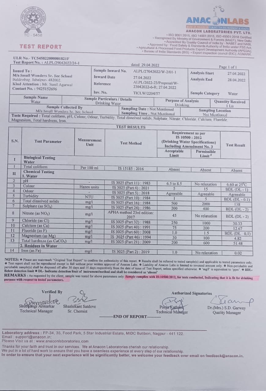 1 | Name Of The School | Small Wonders Senior Secondary School |